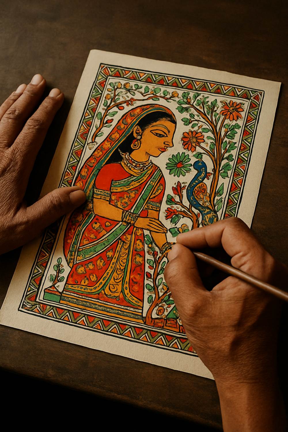 6. वो क्षण जब चित्र बोलने लगते हैं—मधुबनी की तकनीक की बारीकियाँ