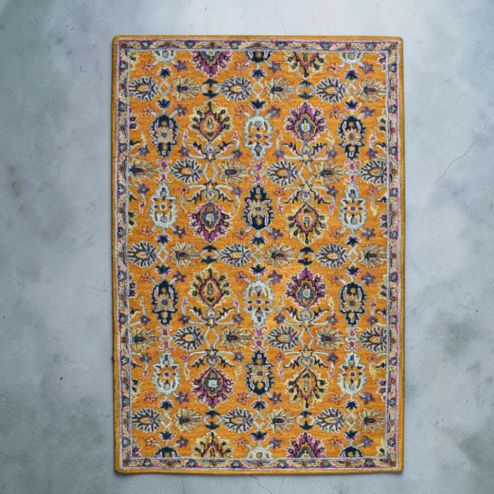 Mustard Floral Hand Tufted Wool Rug